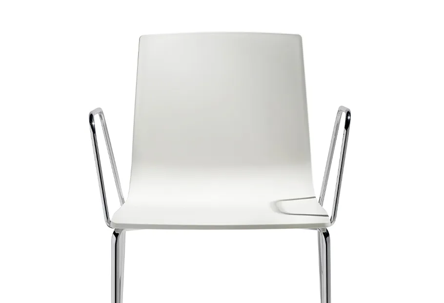 Le contraste entre l'avant opaque et le dossier brillant et la ligne ergonomique caractéristique sont les particularités de cette chaise.