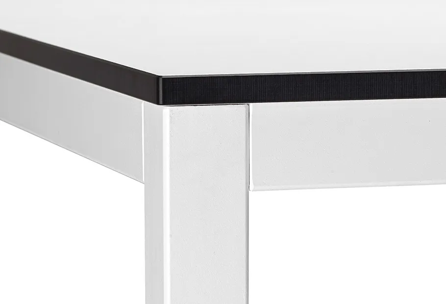 Plateau stratifié compact blanc, anthracite ou effet ciment. Plateau disponible en version carrée ou rectangulaire, aligné au châssis. Dimensions : cm 70x70 - 80x80 - 120x80 h.73