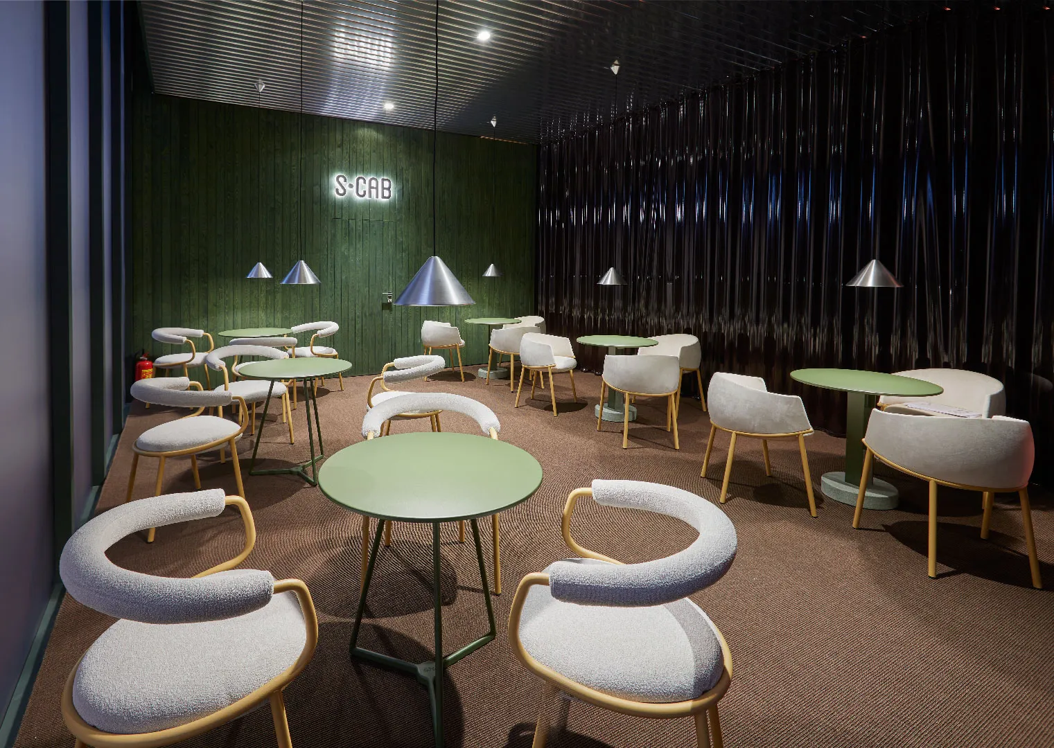 Nel contesto del Salone del Mobile.Milano, l’allestimento progettato da Calvi Brambilla and Partners interpreta l’identità del marchio S•CAB attraverso un’atmosfera magica e immersiva, costruita su una palette ispirata al bosco: verdi profondi, bruni materici e accenti naturali che definiscono uno spazio avvolgente e sofisticato.