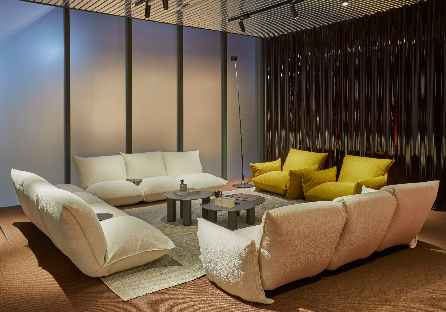 A completare l’esperienza, un’ampia area lounge introduce l’ambientazione della nuova versione indoor della collezione di divani “Brezza”, configurata come spazio di sosta e relazione, in continuità con il linguaggio naturale dell’insieme. Ne risulta un allestimento unitario e coerente, che traduce in spazio la determinazione del marchio nel perseguire con convinzione la strada del design di qualità, unendo cura dei dettagli, forza evocativa e chiarezza espositiva.